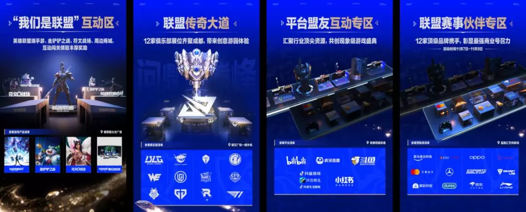 《英雄联盟》全球总决赛联盟嘉年华火热进行中,4大产品(《英雄联盟手游》、《金铲铲之战》、《符文战场》、《英雄联盟周边商城》)、12家全球俱乐部、12家全球赞助商伙伴、5大顶级平台盟友,齐聚联盟嘉年华春熙商圈,与全体召唤师共同打造联盟全新记忆!