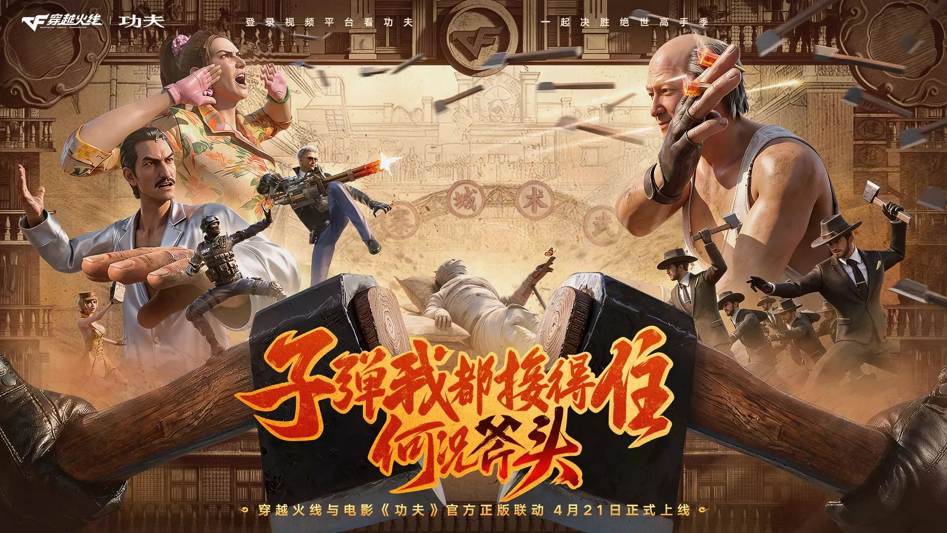 CFx电影《功夫》联动版本“功夫火线”将在4月21日上线,本次版本更新的主要内容有: 1.联动《功夫》,功夫小丑模式登场 2.飞斧狂飙模式上线,新增的特殊战PV…