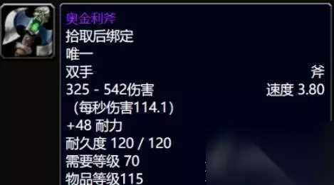 还有许多魔兽世界怀旧服用户还不了解魔兽世界怀旧服wlk奥金利斧什么职业能拿推荐,接下来将由233乐园小编编写的魔兽世界怀旧服wlk奥金利斧什么职业能拿推荐,有兴趣的小伙伴们往下看看吧,希望有帮助到你哦。 魔兽世界怀旧服wlk奥金利斧什么职业能拿推荐 奥金利斧在wlk版本,猎人、萨满祭司、圣骑士、死亡骑士、战士这几个职业可以使用。 奥金利斧是wlk版本前夕入侵事件中推出的武器,属于双手斧。