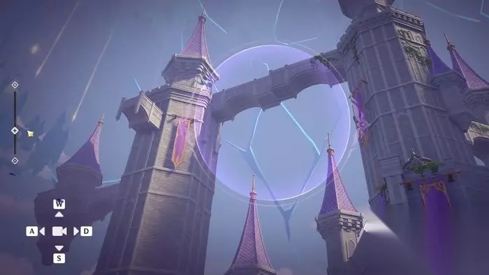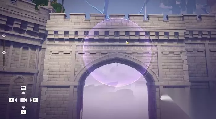 然后跟随任务我们来到了城堡里面,大家坐电梯下去,可以看到又来了一个装置,我们点击互动,此时需要缩小大家的视角,这里面是走廊歪了,我们缩小一下就可以看到这个建筑了,然后大家通过视角的微调以及旋转,把这个建筑物对准即可。