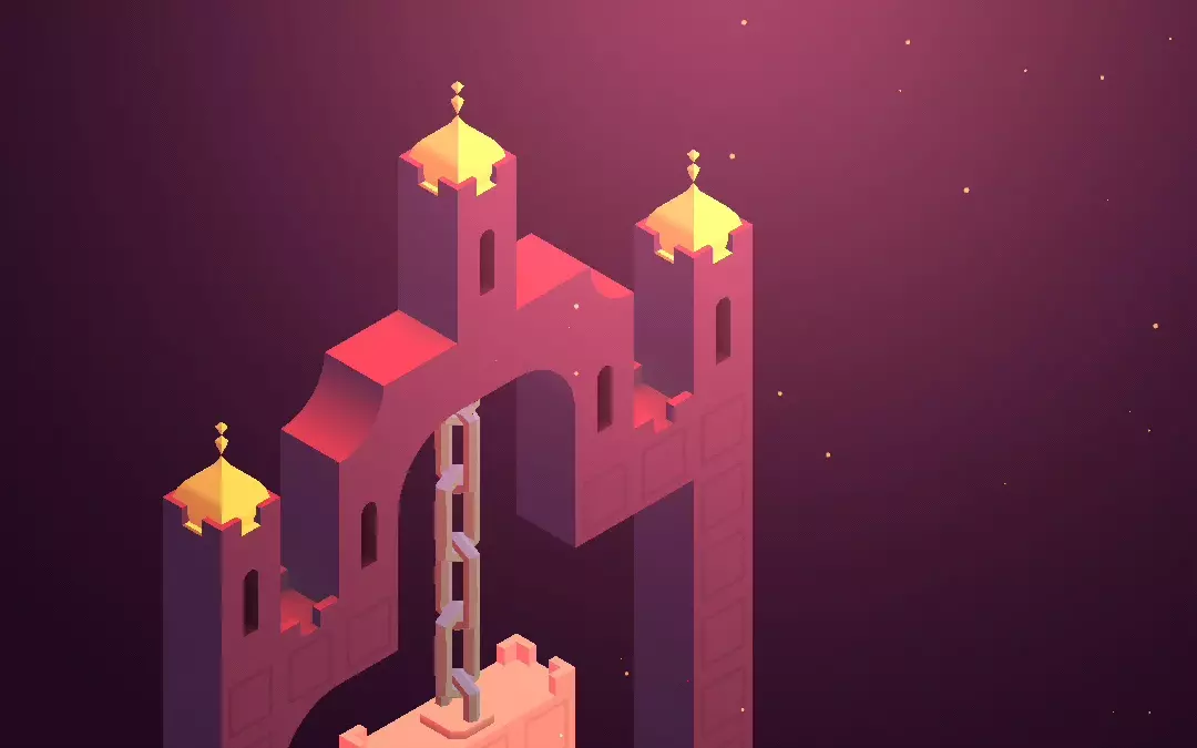 这是《纪念碑谷》一代主线第六关的内容,本关加入新角色图腾,其中四个黄色方块的新奇使用方法让人惊喜,展现出开发商的巧妙设计。