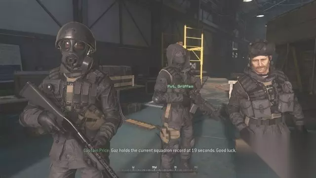 Lovejoy依然站在高台上,但是这次推不动他了。四个观察Soap训练的人这次不吃闪光弹了,原版冲他们扔闪光弹是有效果的…… 有一个成绩表,除了Price Gaz Soap Wallcroft Griffen其他人的名字我都没见过...