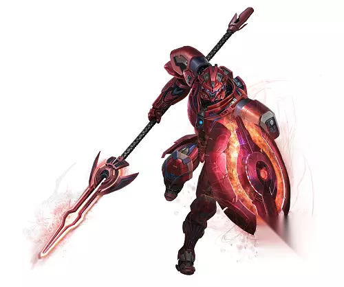 第五名:霸王。战士型机甲,右手拿枪,左手拿盾,能冲能档,三国赵子龙人物,全身红光闪耀,给人一种血气漫天之感!