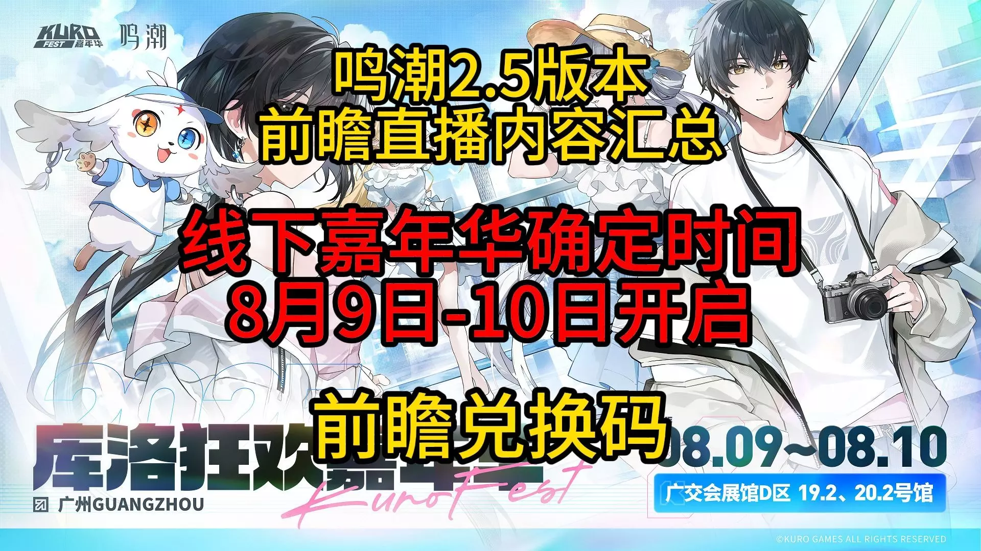 鸣潮攻略 【鸣潮】2.5版本前瞻直播内容汇总,300星声兑换码!大型线下嘉年华8月9日-10日开启!门票近期售卖,新地图新主线新常驻玩法+卡池,编队上限提升,联动及周边