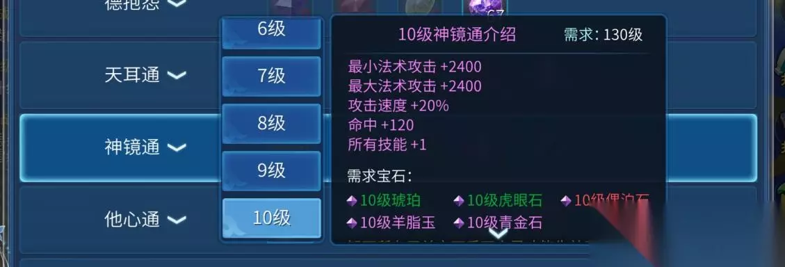 虽然是土豪,但改节约的时候也应该节约,这三个石之灵分别是四孔、五孔、六孔,每一种只比上一中多一块石头,也就是说在级别低的时候,比如69、89的武器,用不时间长,就可以先开四孔或五孔,可以节约金刚钻,又不影响一点点的筹备石之灵,毕竟石之灵可以一步到位神豪还是非常少的。 虽然上图最后加的是夜明珠,不过此处推荐另一款加辉透石的悟则圣。 五、小资石之灵推荐:神镜通(琥珀+虎眼石+偶泊石+羊脂玉+青金石) 这个石之灵小白觉着性价比比较高,特别适合比月卡族投入稍大一点,但又不能和土豪比的人群,首先我们看一下鬼灵继承问题。