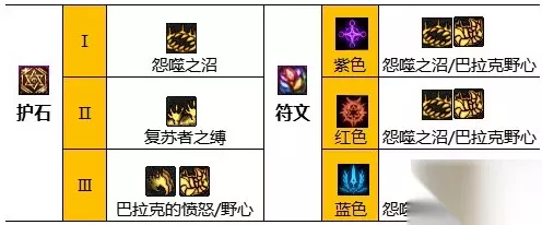 三、死灵110级版本护石推荐 1、通用搭配一 护石:怨噬之沼、复苏者之缚、巴拉克的愤怒/野心 符文:九保怨噬之沼/巴拉克的野心