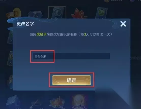五、回到王者荣耀改名栏后,点击“确定”。