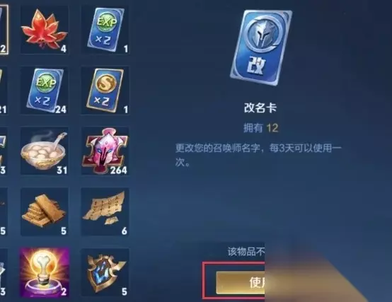 二、打开背包后,找到改名卡,并点击“使用”。