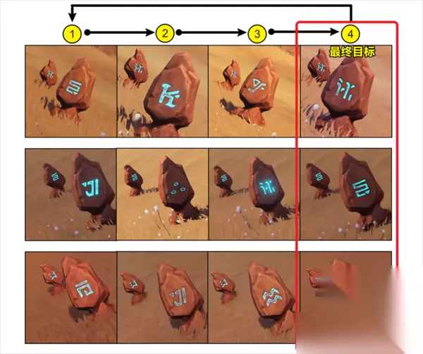 5、如果攻击风化的石碑,石碑的图案将会按下图的顺序(①→②→③→④→①)变化;