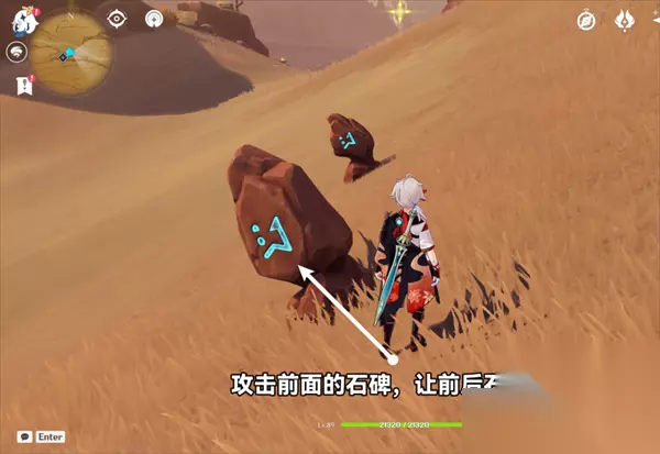 6、如果仙灵飘过石碑,仙灵会让石碑的图案随机变成①、②、③之间的任何一个,此时需要跟在仙灵后面看准时机,仙灵一通过,马上把石碑打成④,即可完成完成解谜。 小编推荐:原神攻略大全
