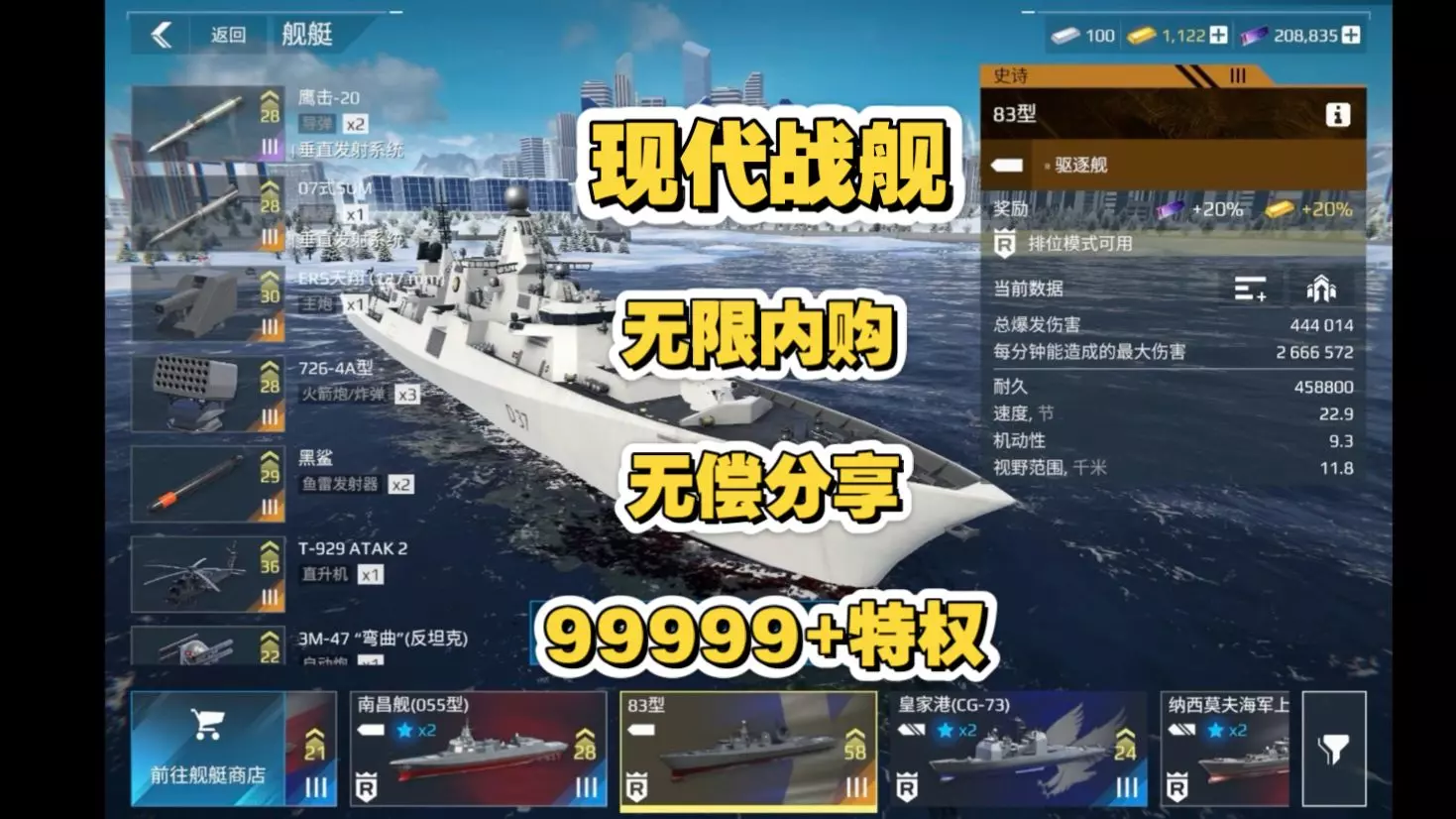 这是《现代战舰》公益版的游戏内容分享,该版本拥有无限资源与无限内购权限,图中展示了游戏内“自由之光”活动抽奖玩法,开启机密货物可获取稀有、史诗级物品,还有必得[英]前卫(S28)的抽奖机制。