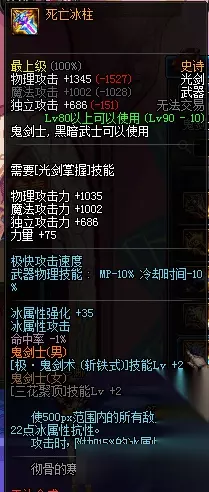 圣剑搭配上天御套,伤害还是可以的,小编之前公会一个剑魂,天御+圣剑,站街400属强,感觉好牛x。 死亡冰柱