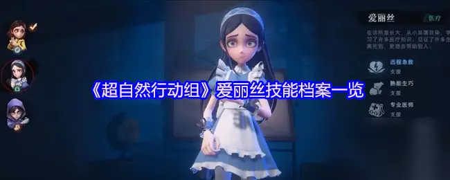 【爱丽丝】在诊所里长大,从小耳濡目染,习了许多医疗知识。见证了许多生离死别,更想去帮助别人。下面是小编给大家带来的《超自然行动组》爱丽丝技能档案一览,感兴趣的小伙伴们一起来看看吧。