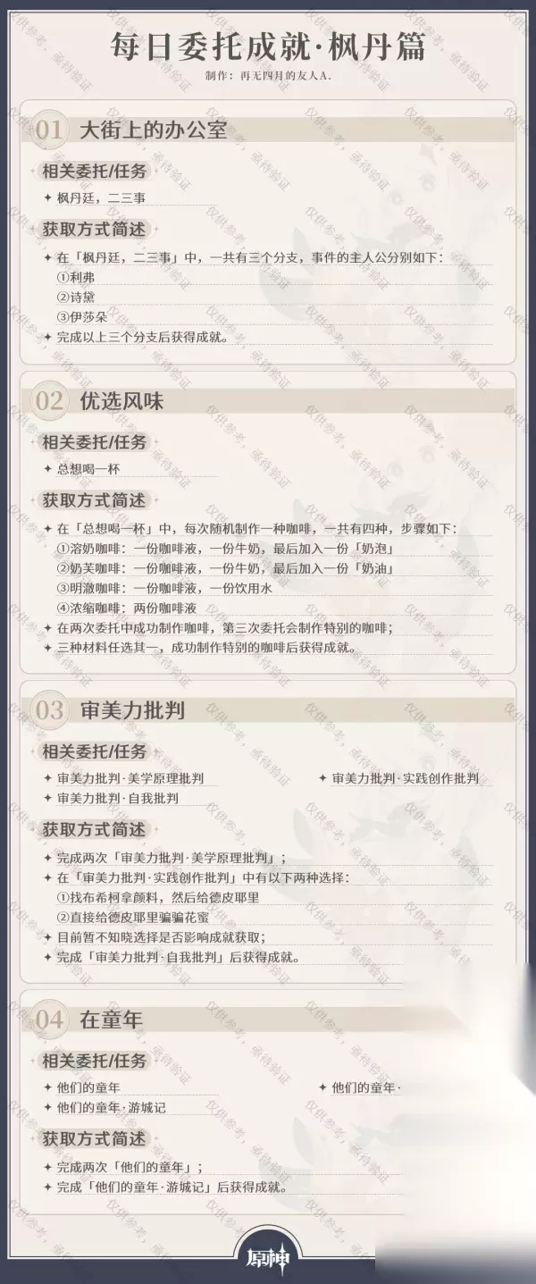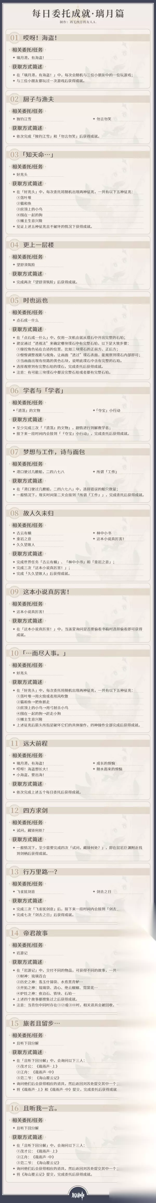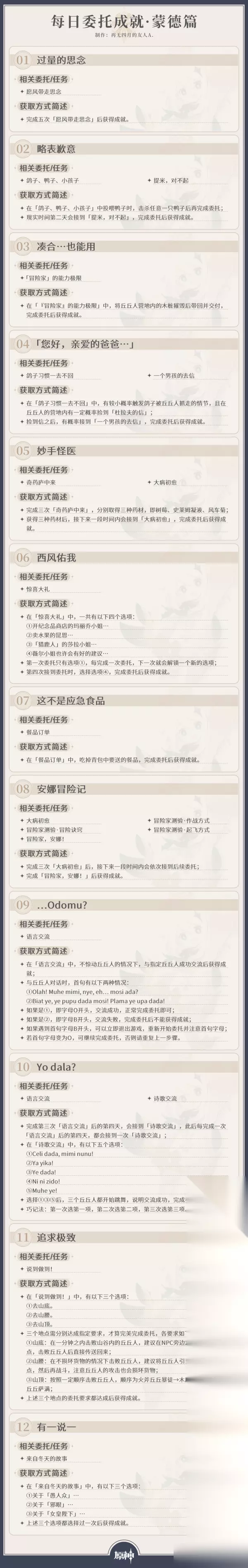 原神原神·成就丨截至V4.0,每日委托成就一图流汇总如下: