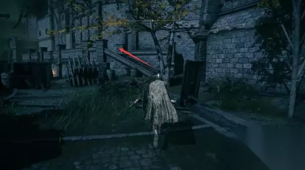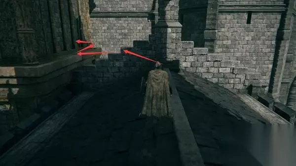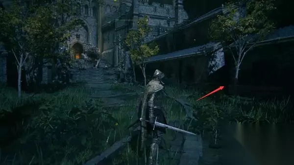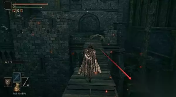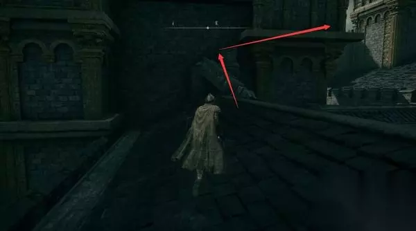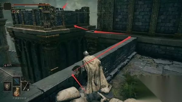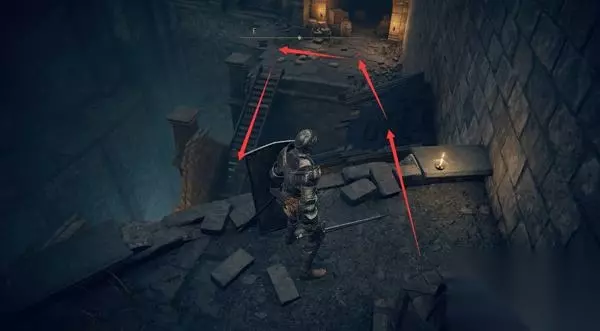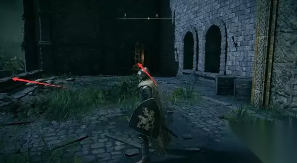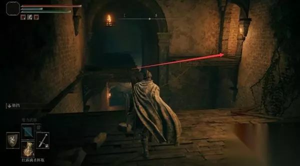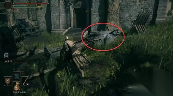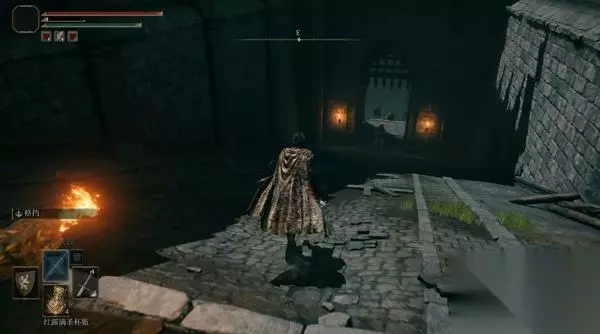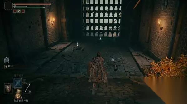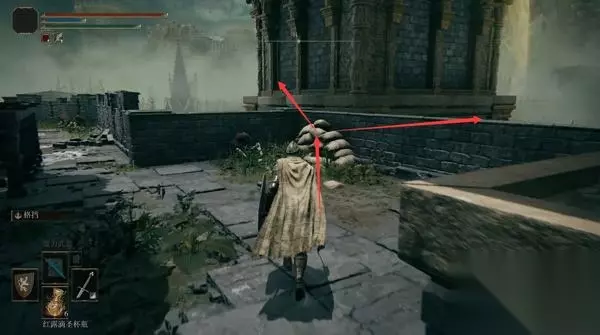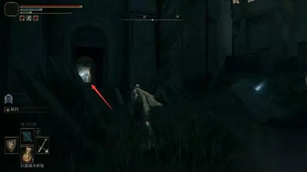 4、经过赐福点往前走,前方高处有远程攻击的敌人暂时过不去,等下可以从城内绕过去。 从小门进入城堡。