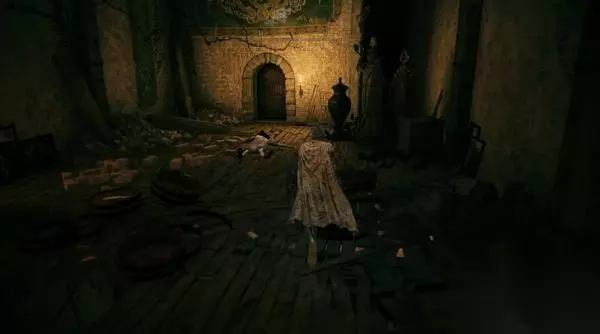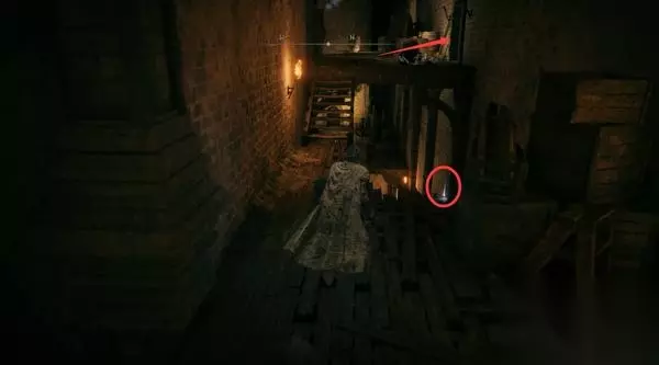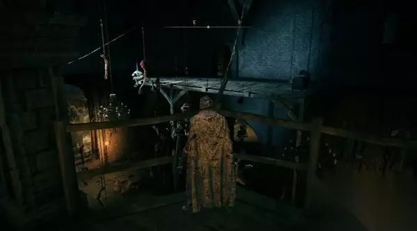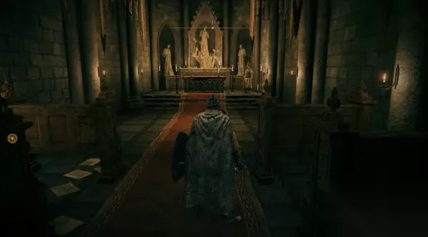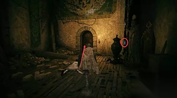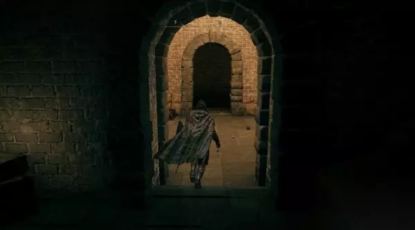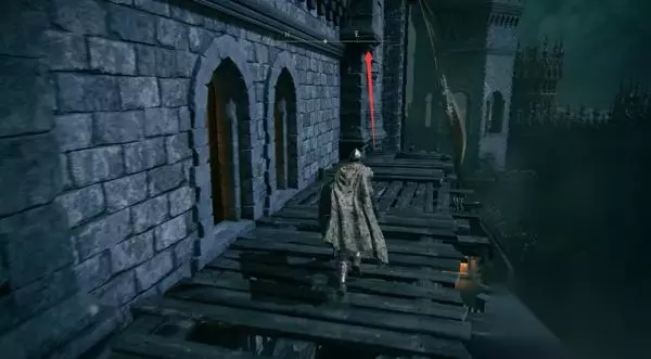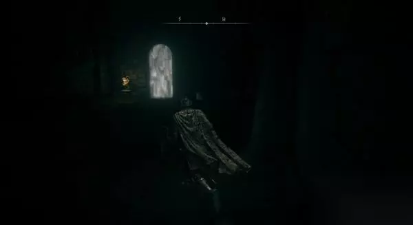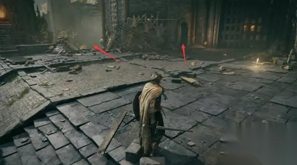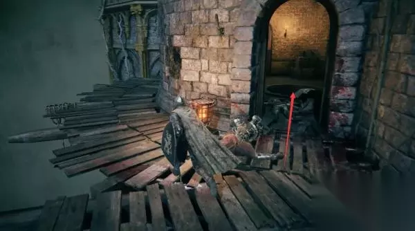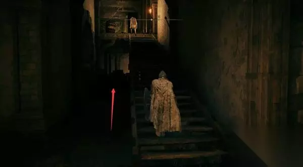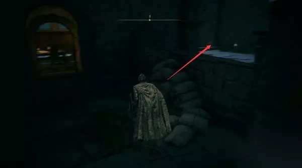 8、进入正门侧边的小屋,里面是门旁小屋赐福点。先别坐下休息,不然怪物全复活了。 然后你发现,这个赐福点就在那个劝你不要从正门进、可以帮你叫开正门的NPC头顶上层。