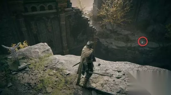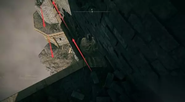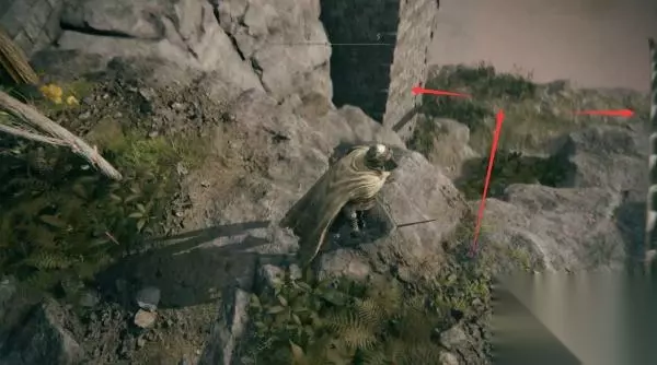 二、断崖 1、正门守卫特别严密,我们还是从旁边的洞走。 走出来看到那边有物品,等下翻过对面的断墙,有路可以绕过去捡。