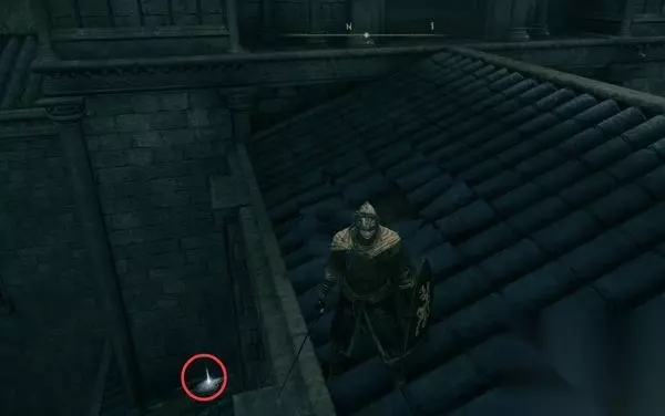 7、再走上坡回到城内,回到刚才石剑钥匙开宝箱的屋子。 这次出门左拐,从这里跳下去,把箭塔守卫全部干掉,正门另一侧也安全了。