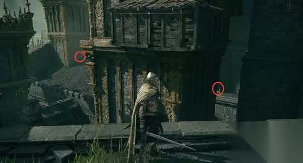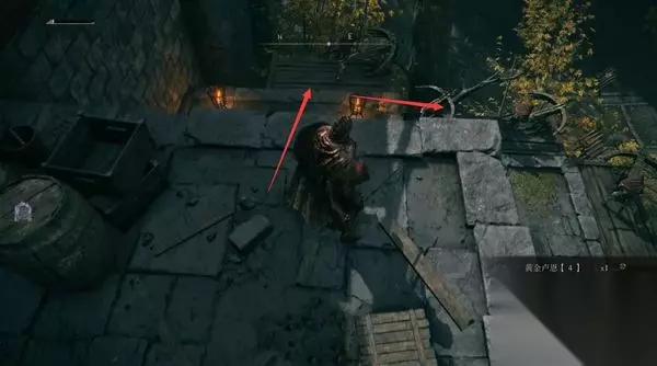 5、前方有敌人,可以不继续往前走。从刚才的升降梯旁房间赐福点,乘升降梯可以绕到它们背后去,抵达深处小房间。 房子的缝隙间有锻造石。