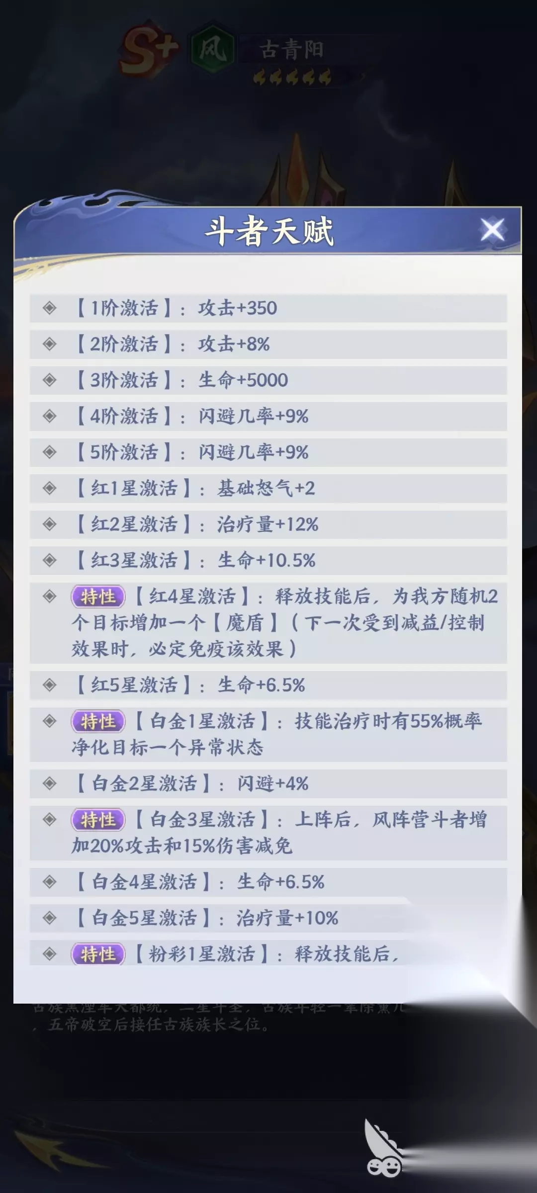 古青阳的天赋系统,主打的就是团队的辅助,以及逐步强化生存。目前对于大部分玩家来说。一旦处于这样的情况下,之后能够拥有不错的基础条件,而当他的星阶逐步得到升级之后,其实他自身的实力也就会加强,当然在整个队伍当中也能够起到关键性的作用。