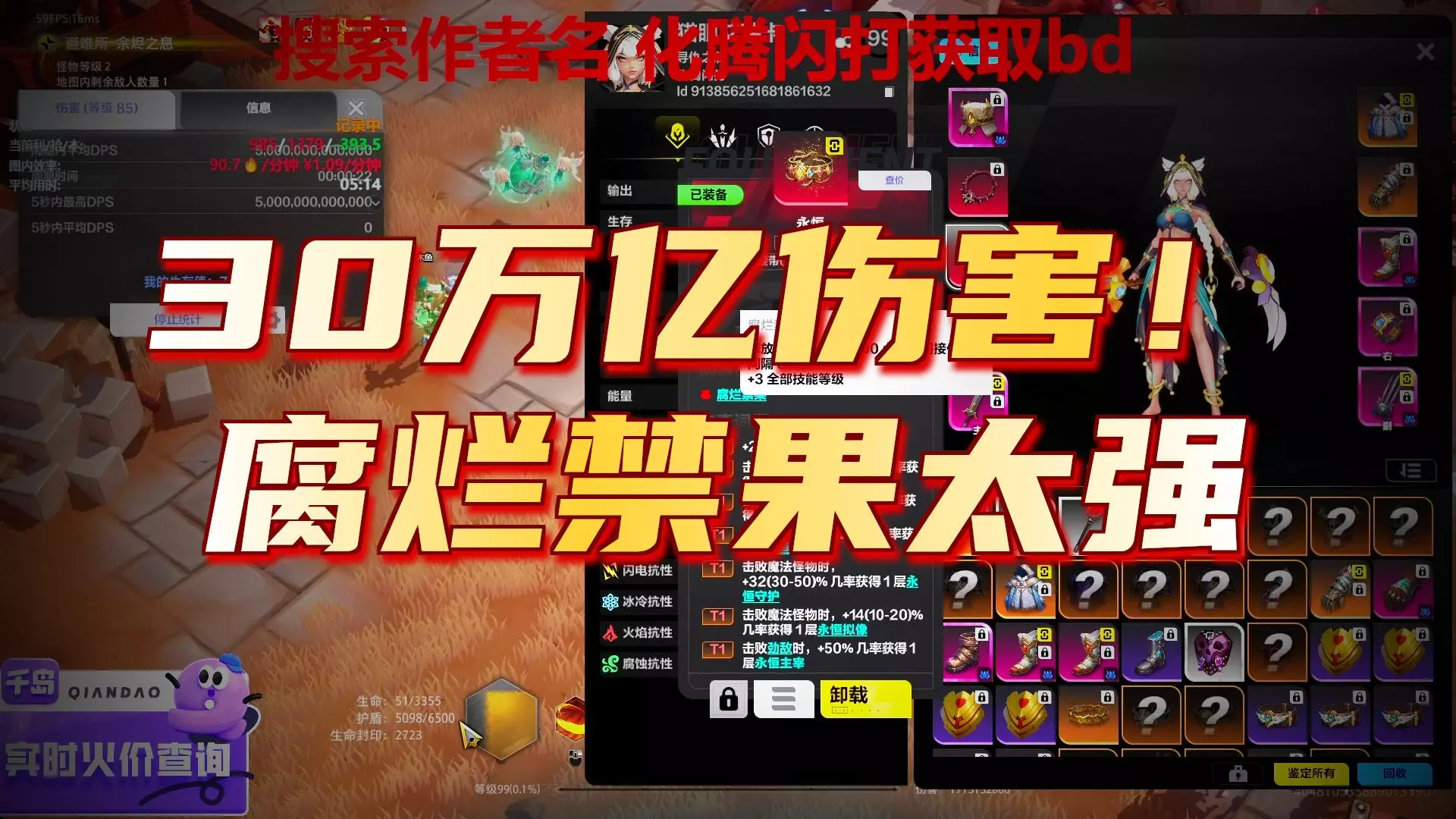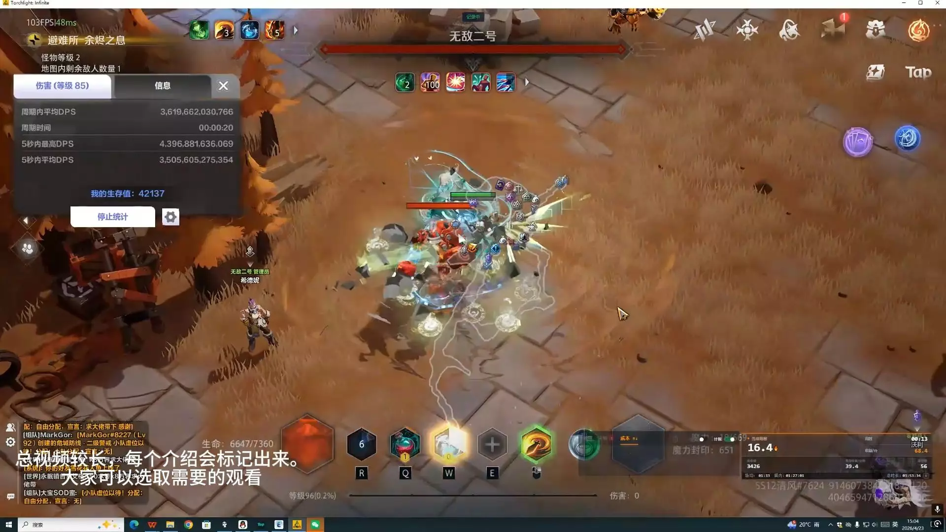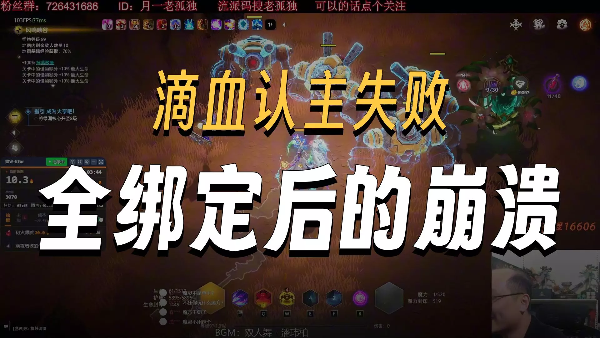 这是《火炬之光无限》的游戏实况,展示了猫三BD的两键长按无脑刷图玩法,画面呈现了刷图战斗场景、关卡选择界面,还提示可搜索作者名获取该BD,刷图效率可观。