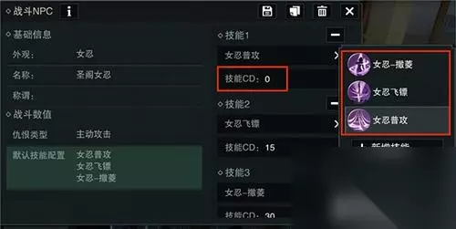 《楚留香》地图布置 编辑怪物,可以选择立即战斗的怪物,也可以选中立性质的怪物,所谓的中立性怪物就是玩家主动攻击之后才采取反击的怪物。而这些怪物的技能内容,还有技能的CD等,都可以让玩家自行调节。
