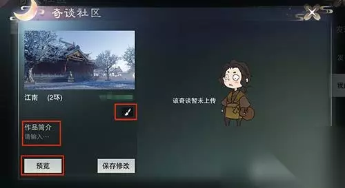 《楚留香》编辑不同的怪物 【发布与社区】 编辑完成之后,并加以保存。可以进入到“奇谈社区”中,点击我的分页,在里面设置好刚刚编辑好的剧情标签和简介,然后我们就能发布自己刚刚完成的作品,发布到这个社区。