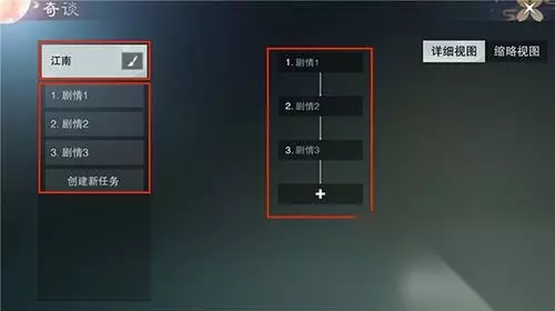 《楚留香》任务编辑界面 【任务编辑-基本设置】 首先点击任务编辑,会进入一个全新的界面,而这个界面就是任务编辑界面了。我们在这里可以看到任务剧情的过程图,创建新的人物,修改剧情名称等等操作。