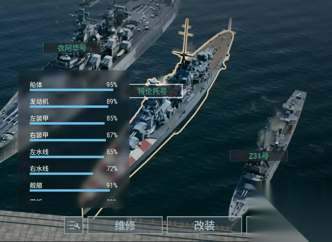 2.丰富的改装玩法 前面说到,不同时代的军舰想要在同时代战争,策略养成自然少不了,游戏中为此增加了武器改装、主/被动技能、属性改装等各类核心玩法,《战争前线》让玩家可以对自己心爱的战舰进行个性化的改装,让它们创造出属于自己理想中的战斗力。所有战舰的改装贯穿始终,配合4大系统“武器系统、装甲系统、技能系统、Buff系统”,玩家可以做“细节化”调整,这样即使和其他玩家拥有一样的战舰,也能打造出不一样的战斗力。万千变化让“有心”的你,建成属于自己的无敌舰队。