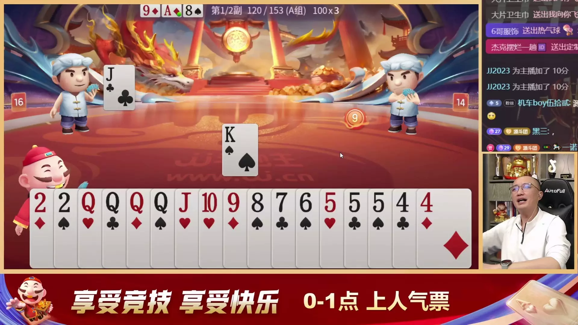 三岁玩牌破釜沉舟四个3的大胆一炸后期残局细腻的行牌为自己争取到了胜利!