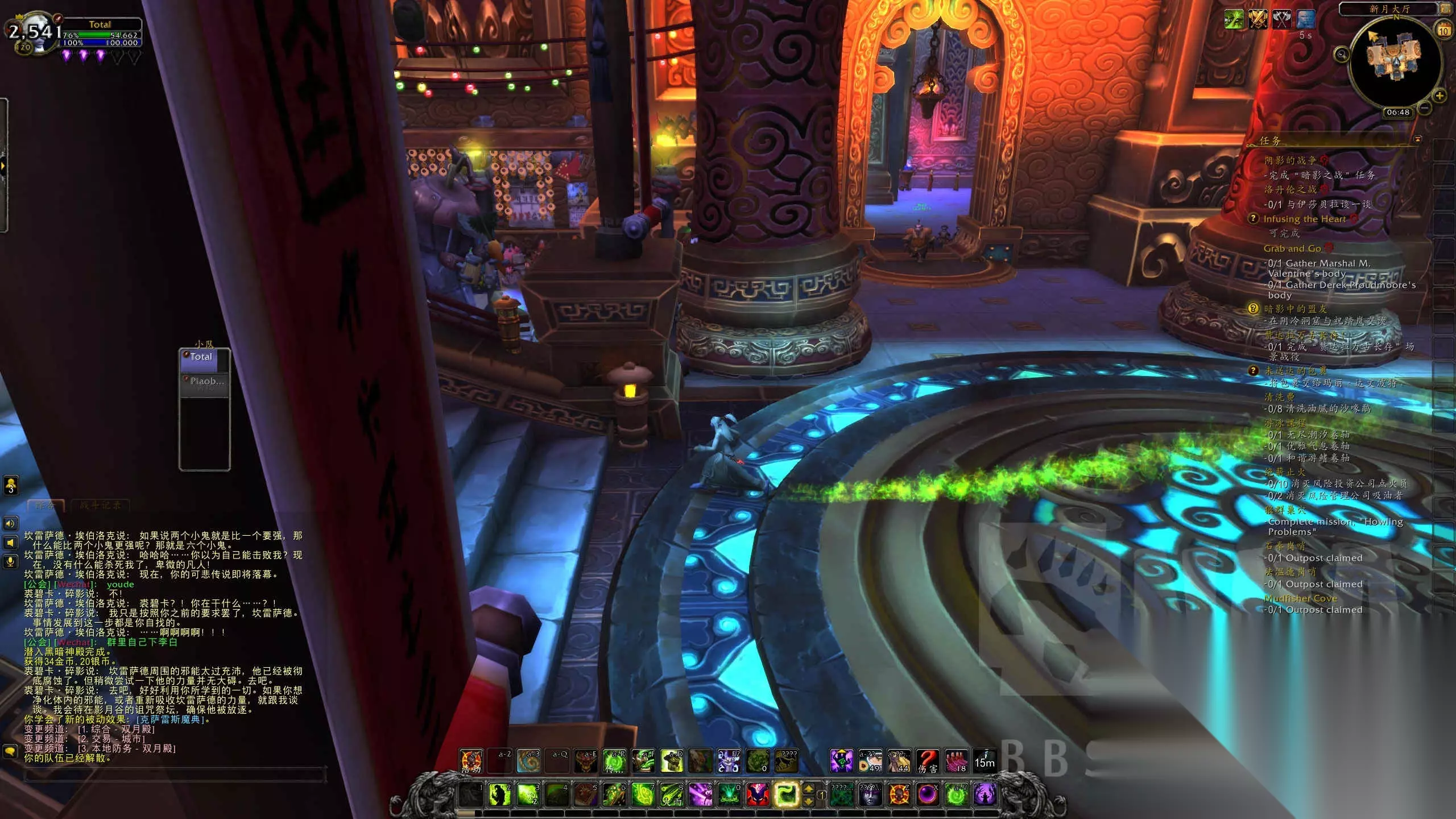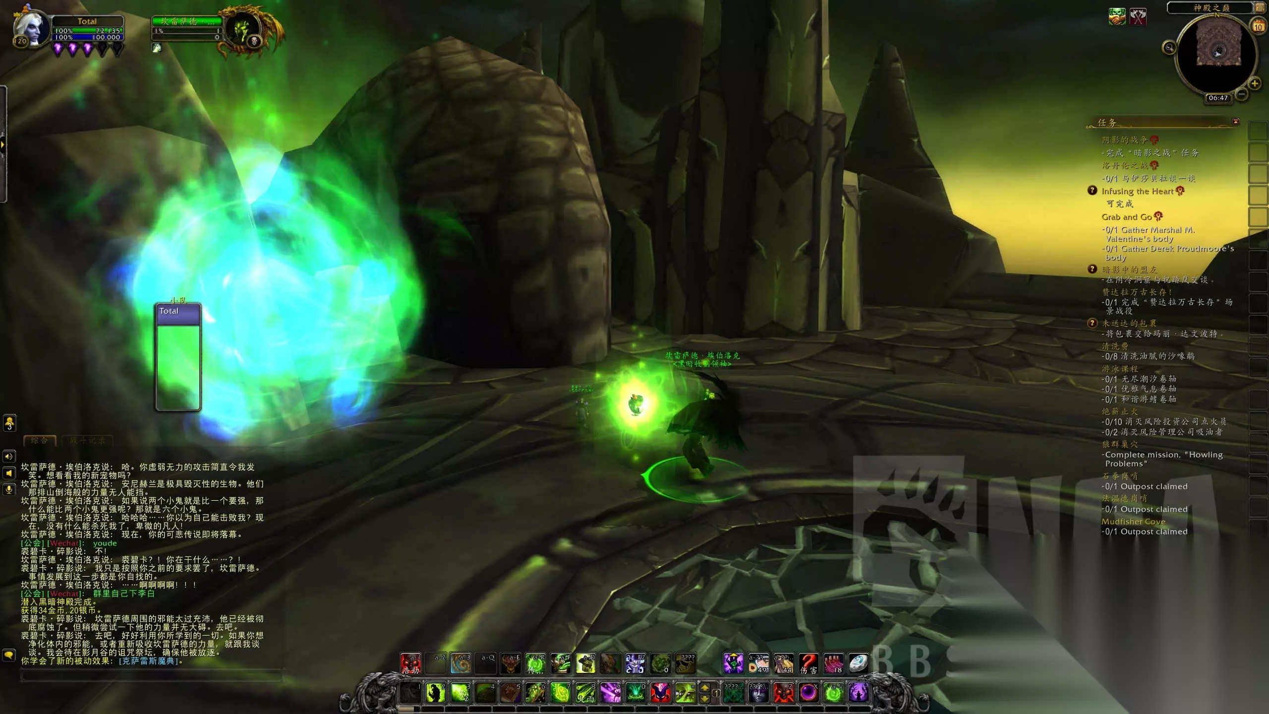 关于绿火任务 与现版本,乃至以前版本有所不同的有 1.属性被压缩的原因,雷神岛及绿火任务中的小怪有些属性还没有压缩好,导致战斗压力完全没有120级碾压90级的感觉。 相反,期间的三脸BOSS战如果没好好打是会翻车的!!没错,120级砍完阿古斯的虚空领主被个90的三脸摁在地上摩擦。 2.由于地狱火和末日守卫分别变成毁灭一次性爆发和删除,绿火任务中的一些对话被删减,玩家的末日守卫相关信息再也看不到了。 3.在黑暗神殿中,有个暗影迷宫相信大家都有印象,到目前为止这个迷宫还是碰到就死的,眼睛+法阵的规避方法没有,只能慢慢蹭过去(虽然一点也不难)