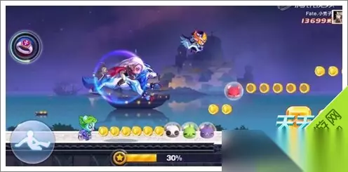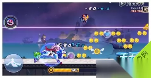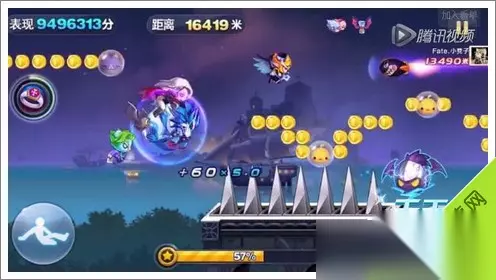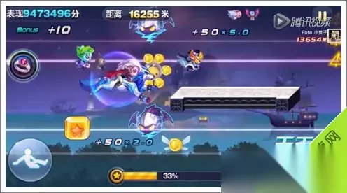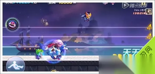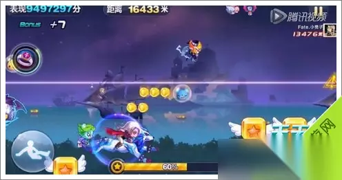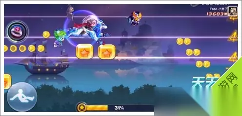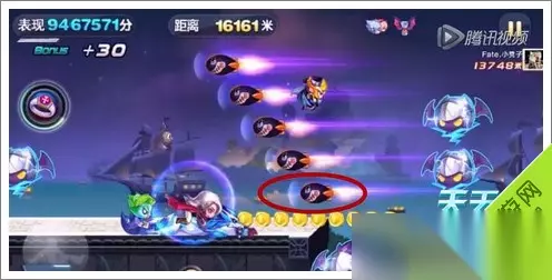 天天酷跑新场景截图9 然后会踩到2个星星方块!然后再接2跳加滑翔~这样就直接从导弹和闪电怪中直接穿越过去了!后续就三跳加滑翔。一定要,就可以越过后面的障碍