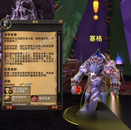 铭文 发放铭文专业任务的NPC为塞格(坐标53,76)