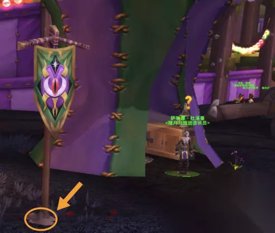 如果你已提前准备好材料,那么直接使用暗月旗帜包就能做出一面暗月旗帜,随后稍微往旁边走几步,与地上松动的石头互动即可完成任务目标。