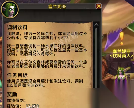 炼金术 发放炼金专业任务的NPC为塞兰妮亚(坐标50,69)