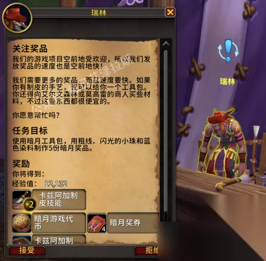 制皮 发放制皮专业任务NPC为瑞林(坐标49,61) *别被他头上的蓝色感叹号迷惑~请相信,就是他给你发任务!