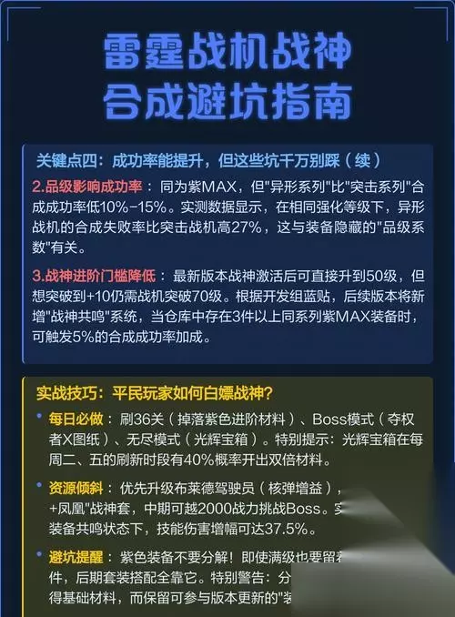 本文目录一览 1、《雷霆战机升级材料获取攻略》 作为一款热门的飞行射击游戏,《雷霆战机》中的战机升级是提升实力、挑战更高难度关卡的重要途径之一。而升级所需的材料获取则是每位玩家需要面对的问题。本文将为大家详细介绍《雷霆战机》中常见的升级材料及获取攻略,帮助玩家们打造无敌飞行利器。