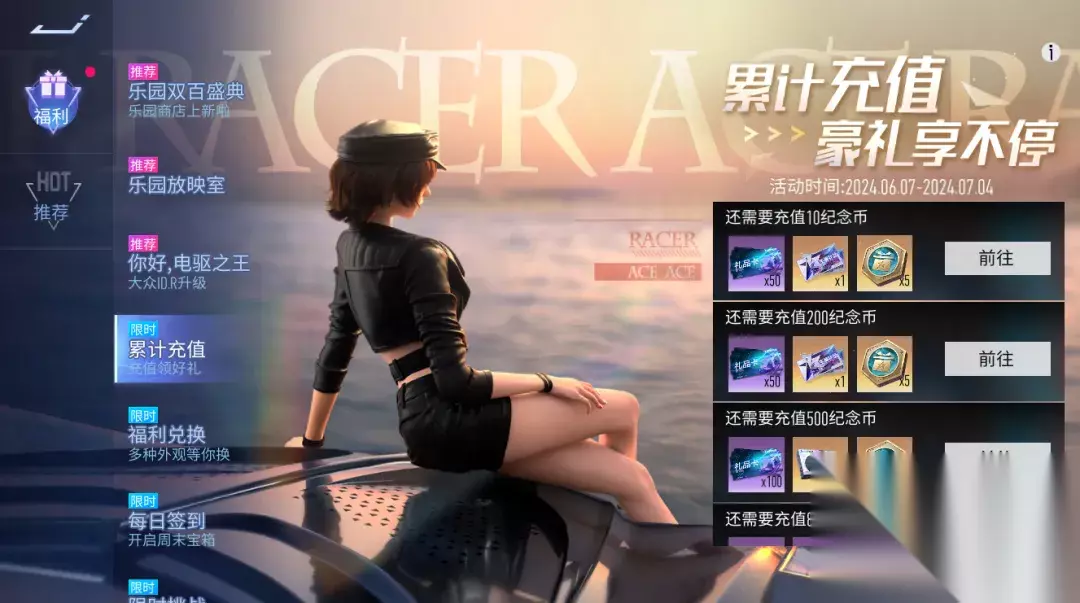 『累计充值』累计充值,豪礼享不停。6月7日~7月4日活动期间内充值纪念币,得巨额返利,还有大量“福利金币”等你领取。(福利金币可在福利兑换活动中换取奖励)