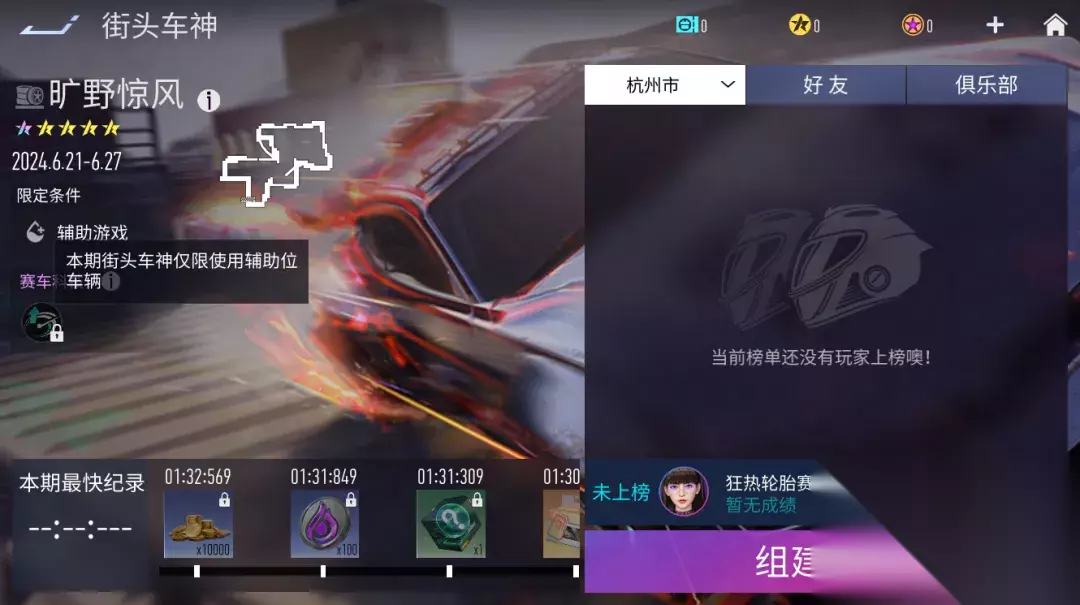 排位更新 [1] 逆向地图:英雄之路、峡谷纵横、雅丹 拉力、乡村小镇重返排位赛,并做了一些修改。 英雄之路逆向:优化了赛道中的护栏、重置点问题。 雅丹拉力逆向:优化了部分路段的腾空问题 乡村小镇逆向:移除了起步路段的障碍物 [2] 美术升级:逆向赛道:乡村小镇、雅丹 拉力、英雄之路 现已加入新的天气效果,增加了赛道的沉浸感和真实感。 [3] 功能优化:个人排位赛低分段匹配队列调整。 周免车辆 6月21日练习赛周免车辆更新:凯蒂号、迈凯伦 600LT、洛基、泰坦、月宫舞灵、以太。(限免车辆等级设定为8级,芯片为固定芯片,无法进行更换。如果你已经拥有限免车辆,并且等级高于8级,则不会显示限免车辆) 街头车神 街头车神『枫落过隙』将于2024年6月20日23:59结束, 街头车神『旷野惊风』将于2024年6月21日8:00 开启,本期街头车神仅限使用辅助位车辆。
