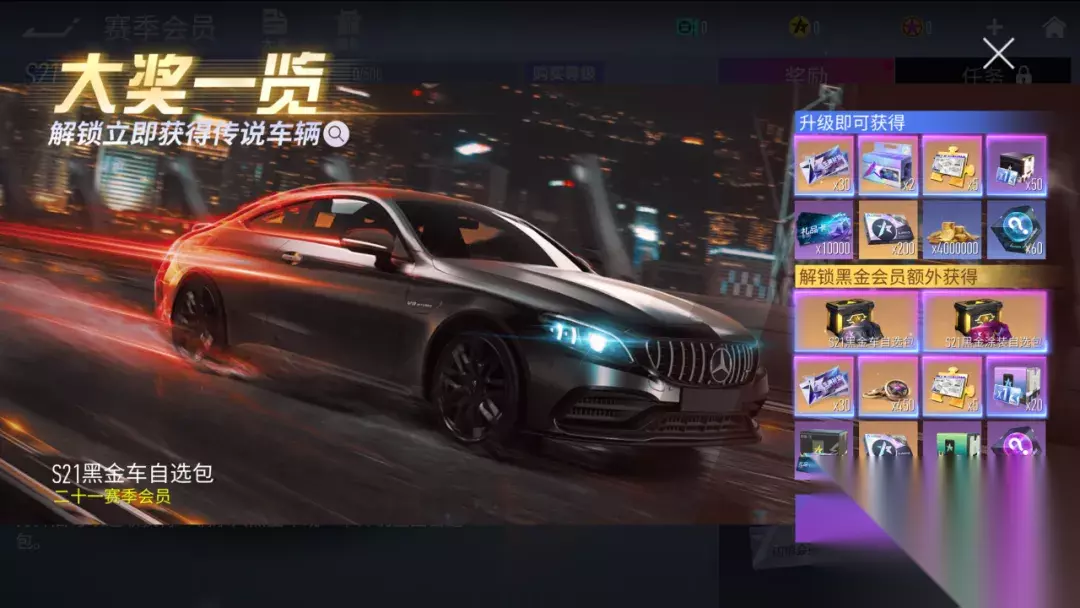 赛季会员 S21赛季会员强势登场,可以获得强力场地竞速车『梅赛德斯-AMG C 63 S Coupe』