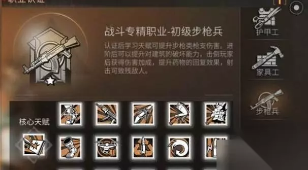 明日之后适合自己的职业是提升游戏体验的关键。目前游戏中有三大类职业:采集、制作和战斗,每个大类下又有细分职业,比如采集类包括伐木工、挖矿工和采麻工,制作类有枪械工、护甲工和家具工,战斗类则分为步枪兵、武士和狙击手等。新手玩家在15级后可以自由选择职业,注意职业一旦选定需要花费金条才能重置。下面和233乐园小编一起来看看吧