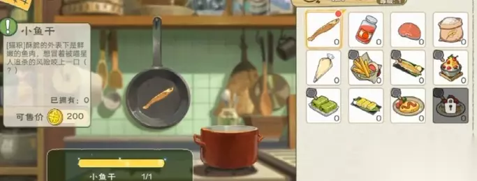 在游戏里边,不同的鱼类是可以做成不同的料理的,就说这个鲤鱼吧,玩家可以用它来做成小零食,像那种小鱼干啊什么的,做好了之后不是给自己吃的哦,是可以拿来喂猫的。要是鲫鱼的话就可以利用锅子进行煲汤来喝哦,味道应该会很鲜美哦,给角色补充体力也很不错。