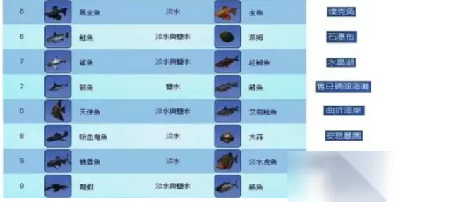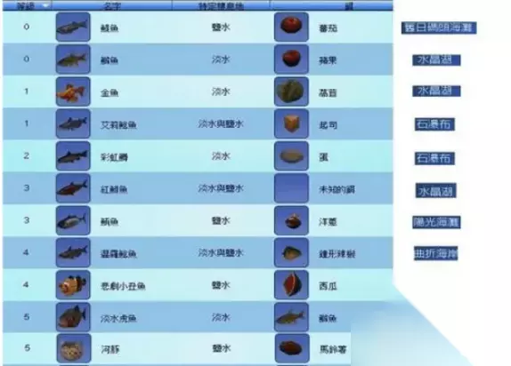钓鱼肯定要有鱼饵,不同的鱼饵钓到的鱼也会不同,同是也与水的深浅有关,游戏中各个钓鱼点分布的鱼的种类很多。有些鱼很多点都有