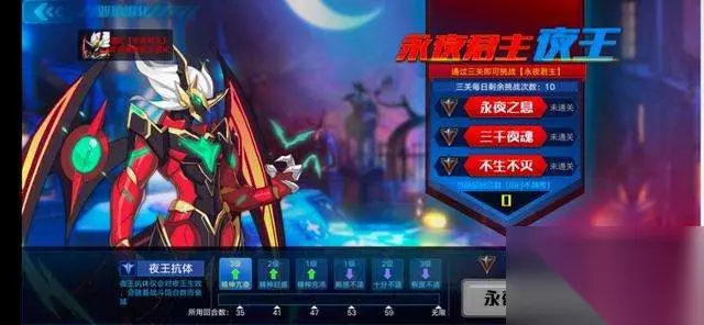 2、夜王 建议全队70级以上 阵容推荐:花冠削属(卒),上离渊消耗(卒), 上黄金圣天伊(这里推荐特性吸血之力),打不死再上力量王或者白狗补刀 玩家打夜王不要着急,因为夜王70级时确实不好打,玩家可以等到71级以后再打,这样子基本都可以打得过。