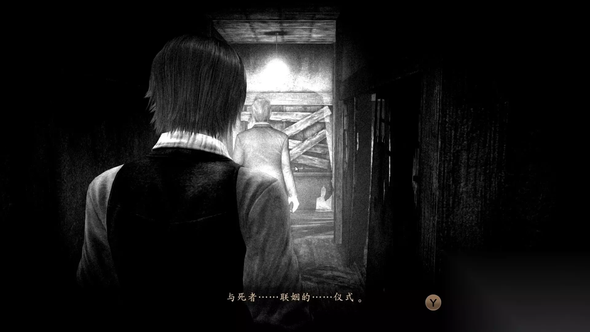 【目的】离开迷途之家并下山 回到一楼打开佛堂的门出现怨灵「被塞进匪中的男子」,一开始记得回避因为空间太小了。 消灭后怨灵不会消失,需要触屏他进入剧情,然后获得「民俗学者的手记 七」「民俗学家的语音记录 三」。