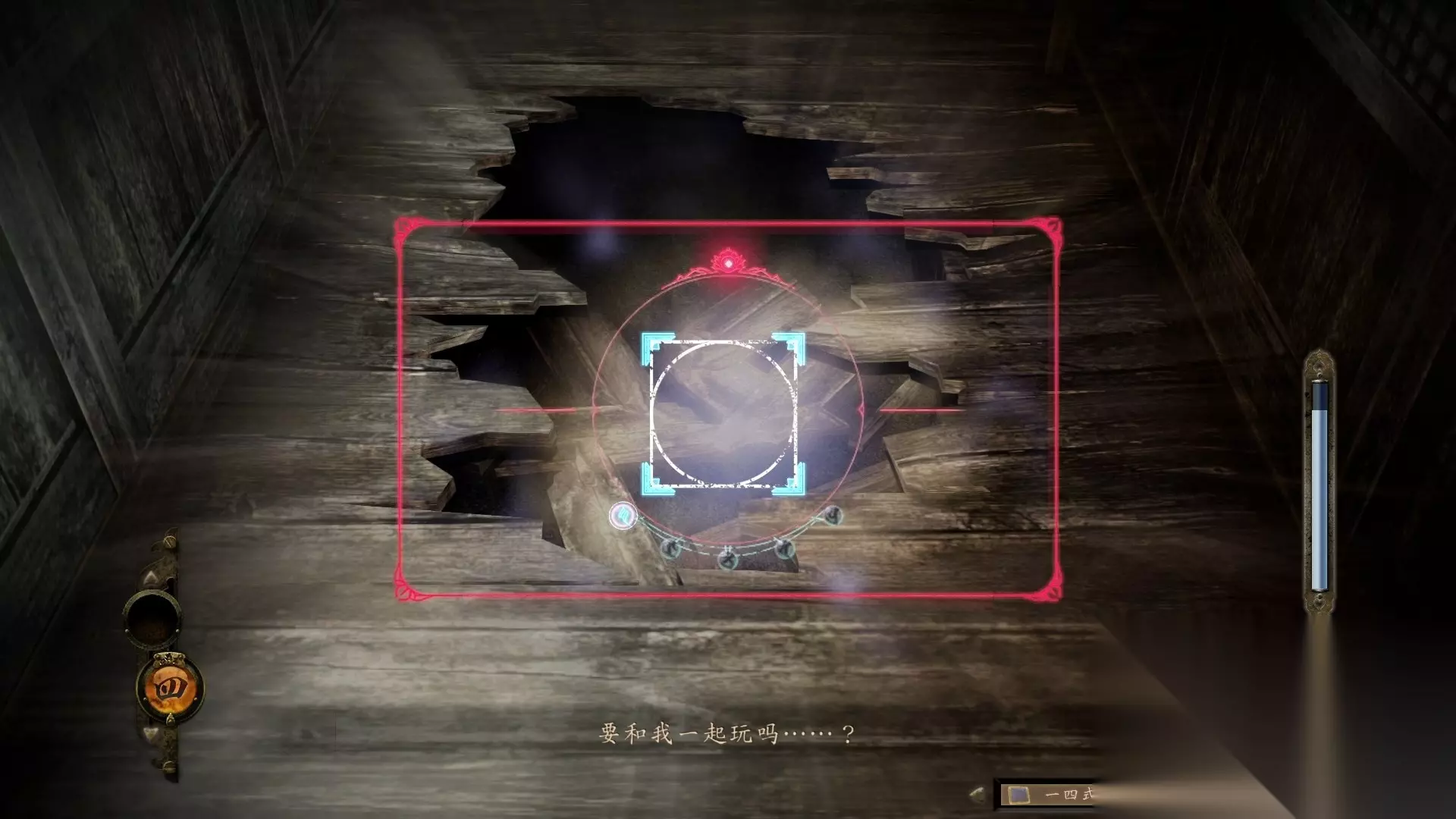 然后回到前门的右侧来到二楼,调查二楼破洞的房间的柜子获得「六一式胶卷x12」后可立马拍摄到「徘徊的渡会启示」。