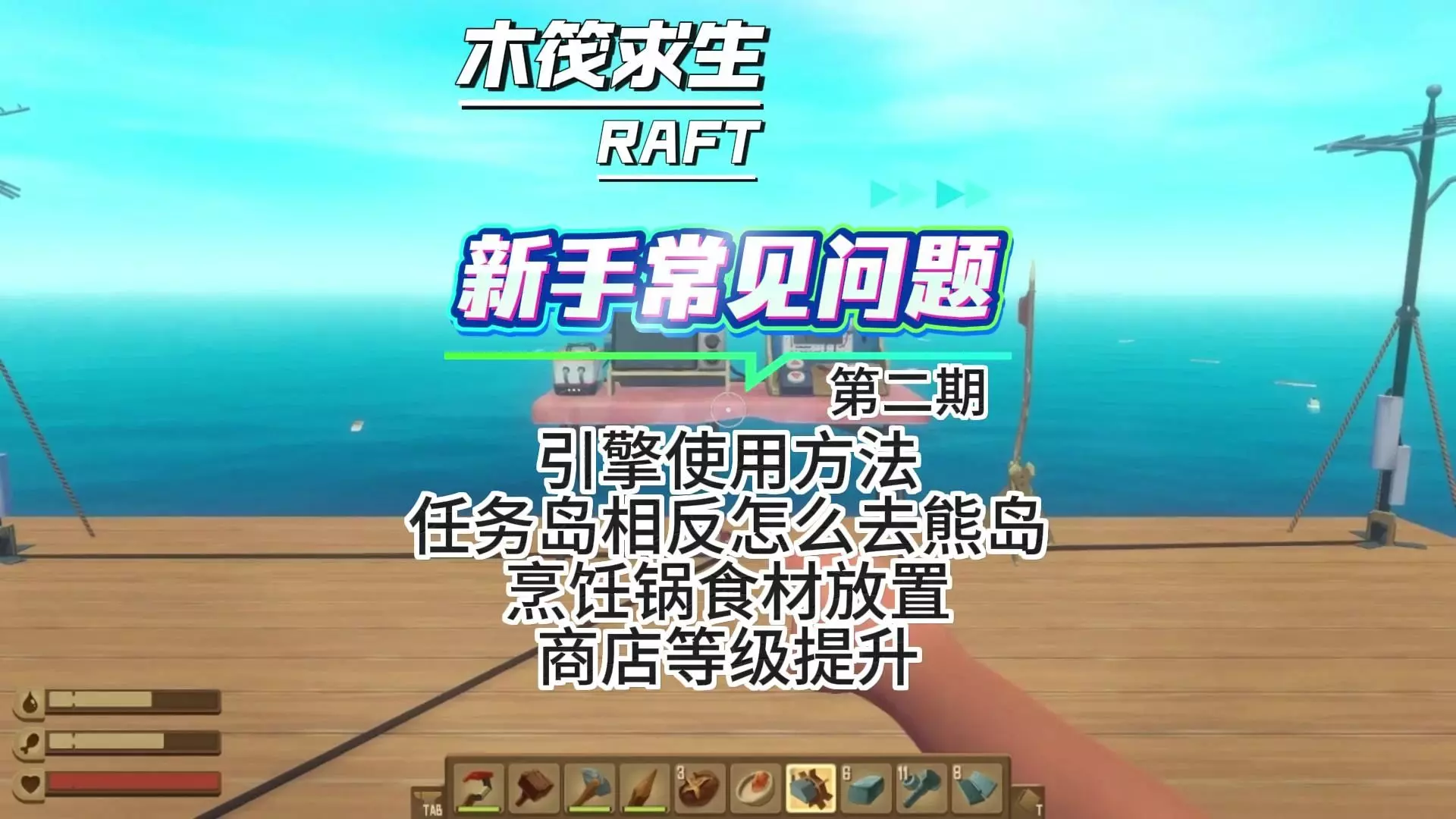 这是生存游戏《木筏求生》的新手向攻略解说第二期,将为玩家讲解解锁熔炉、高级净水器,探索神秘飞机岛,扩建木筏,实现垃圾自动化搜集等新手进阶玩法,助力玩家更好地在木筏求生中生存。