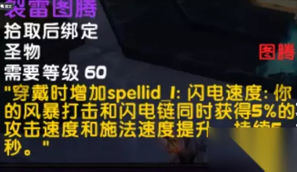 裂雷图腾:穿戴时获得闪电速度的buff加成,玩家获得持续五秒的攻击速度和施法速度的加成。