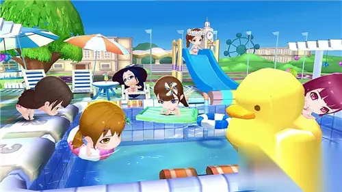 【Q版偶像萌翻天】 除此之外,《星梦学院》还为每位小偶像定制了可爱的3D人物形象,精致的建模、可爱的表情、华丽的服饰让人不禁大呼萌翻天际。与真人契合度极高的Q版偶像不仅能为大家带来耳目一新的游戏体验,更能让聚聚们突破次元壁感受到与偶像亲密互动的魅力!无论是在咖啡厅弹钢琴、泳池中玩滑滑梯、还是在图书馆看书的偶像……都让人忍俊不禁!