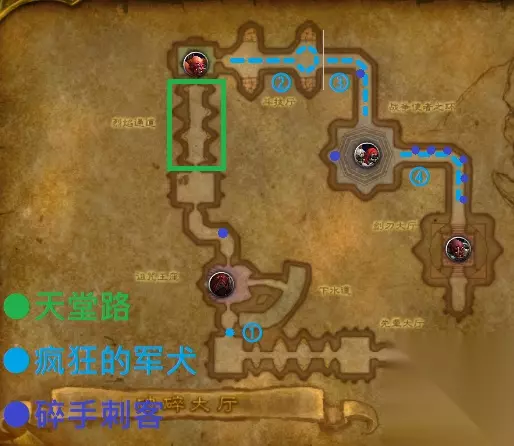 重点小怪 大量高物理伤害小怪,不过物理怪多反而仍以AA为主。 先辈大厅-第一个房间:进本后通道尽头第一个房间有8只怪站在成一排,而且一个 [碎手军团士兵] 来回巡逻。这8只是4组仇恨不联动的小怪组,只要等碎手军团士兵走到另一侧,就可以卡视角拉回来打。 碎手斗争者:[脚踢]、[痛击] 风怒二连击,施放 [碎手诅咒],使造成的伤害提高5%但受到伤害同时提高15%,是诅咒可驱散。 影月暗法师:会 [恐惧],还有大范围的 [火焰之雨] 务必打断或躲开范围。 影月侍僧:[心灵震爆] 造成中等伤害,可打断;给自己和周围的怪施放 [真言术盾]、[抵抗暗影] 提高暗抗,对小怪施放 [治疗祷言] 造成5000左右群疗;注意进攻驱散和打断。 碎手军团士兵:同常站在一大组怪 (4只以上) 面前、来回走动,免疫所有控场。与一群怪一起进入战斗时,会在其他小怪死亡时召唤 [邪兽人转化者],因此在每一组怪中通常都默认第一优先击杀。给自己和周围的怪 [戒律光环] 提高招架格档机率,自身也会 [激怒] 提高攻速与伤害。 先辈大厅-房间后通道:由于第一个房间法系怪多所以通常会拆开控杀,通常会从这条通道开始AA。 碎手撕裂者:[上勾拳]、[顺劈斩]、[激怒] 提高攻速与伤害。 碎手狙击者:会对法系玩家施放抽蓝的 [蝰蛇钉刺]。 烈焰通道:天堂路,进入后就不停地出现碎手狂热者奔向玩家。每波结束后可以在凹角恢复完再前进。 碎手弓箭手:在往血卫士伯鲁恩的天堂路上持续投放 [烈焰箭],在地上生成一摊火焰。 斗技厅:左右两侧有一名百夫长与四名角斗士的组合,角斗士会循环互殴至40%左右然后回满;让他们互殴至50%以下再开怪,会轻松很多。中间则有 [碎手军团士兵] 与大群大群的怪。 碎手百夫长:免疫所有控场,对目标 [破甲攻击]、对周围小怪 [战斗怒吼] 增伤。 碎手角斗士:伤害很高但可被缓速,[致死打击]。 碎手斥候:会 [冲锋] 随机目标,而且会抓潜行。 碎手勇士:免疫控场但可缓速。 碎手驯犬者、疯狂的军犬:这两种怪是固定组合,驯犬者免疫控场,会 [多重射击],并周期性驱散周围小怪的减益效果;军犬则会 [狂怒嚎叫] 增伤,[血肉撕咬] 造成高额物理伤害,清这波怪时注意注意维持控场缓速的减益效果。 碎手刺客:以潜行状态存在,会 [闷棍]、[背刺] 偷袭。 高阶术士奈瑟库斯 奈瑟库斯曾是影月氏族的萨满祭司,他放弃了对元素的崇敬,转而研习运用邪恶魔法的艺术。他所控制的恶魔能量使他仅剩下一副躯壳,唯有在折磨年轻的邪兽人时才能获得乐趣,以检验他们精神和肉体力量的极限。 概况说明 编注:可以心控前面的小怪 [影月侍僧] 给队友上暗抗来打这个boss。将王房内四只邪兽人击杀就会激活首领战,前提前恢复好状态以应对。如果第四只杀太慢,奈瑟库斯会自己杀了他然后主动与玩家开战。 整体战术:第一时间躲避 [次级暗影裂隙],当奈瑟库斯的血量降至25%以下并开始施放 [黑暗之脊] 就不会再移动,近战可以游走于5码边缘刮痧。 坦克:使奈瑟库斯背对人群,[黑暗之脊] 阶段可以后退至5码外。 治疗:[黑暗之脊] 阶段加大治疗。 伤害输出:[黑暗之脊] 阶段使用自保。 技能列表 暗影顺劈:高阶术士奈瑟库斯对一名近战范围的玩家及距其最近的盟友造成4000点暗影伤害,最多可影响3个目标。 凋零缠绕:高阶术士奈瑟库斯使一名玩家因恐惧而逃跑,持续4秒,并对其造成1373点暗影伤害。奈瑟库斯恢复相当于该数值100%的生命值。 次级暗影裂隙[致命]:高阶术士奈瑟库斯在一名玩家脚下制造裂隙,并每秒对裂隙中的玩家造成3800点暗影伤害。 黑暗之脊[重要]:当高阶术士奈瑟库斯只剩下25%的生命值时,他会疯狂的旋转,对5码范围内的所有玩家造成物理伤害,并发射造成暗影伤害的黑暗魔法箭,造成1500点暗影伤害。 掉落列表 普通&英雄: [恶意披风] [奈瑟库斯护腕] [塔拉狩猎束带] [永固重盔] [月亮女神的象牙神像] 血卫士伯鲁恩 在血腥围攻沙塔斯期间,伯鲁恩对一块德莱尼圣骑士领地发起了猛攻,这些圣骑士当时将自己封锁在城市的角落里。他单枪匹马地消灭了防御者,但却身负重伤,无法跟随部落加入此后突袭艾泽拉斯的行动。现在,伯鲁恩的伤势已经痊愈,他在地狱火堡垒中为卡加斯酋长效力,希望能弥补自己错过那些辉煌战役的遗憾,并用敌人的鲜血在兽人历史上写下自己的名字。 概况说明 整体战术:整个烈焰通道可以看作此场首领战的前置阶段,只要不开BOSS就会持续刷新小怪,按步就班推进即可;触发首领战后,优先击杀身边的弓箭手小怪。 坦克:将血卫士伯鲁恩背朝人群,避免 [顺劈斩] 误伤队友。 治疗:治疗被弓箭手盯上的队友。 伤害输出:优先击杀身边的弓箭手小怪。 技能列表 顺劈斩[重要]:血卫士伯鲁恩发动顺劈斩,对一名玩家及其最近的盟友造成3000点物理伤害。 恐惧:使一名玩家因恐惧而逃跑,持续5秒。 碎手弓箭手-驱散射击:发射一次短距离的射击,对目标造成物理伤害,并使其迷惑4秒。 掉落列表 英雄: [烈焰怒火长裤] [迅足之靴] [涌动思维腰带] [杀戮肩甲] [血卫士的狂野项链] 战争使者沃姆罗格 凶残而狡诈的食人魔沃姆罗格被视作是邪部落最致命的成员之一。但这一人人惧怕的暴徒却也有自己的麻烦。这位食人魔颈上的双颅总会在哪怕是最简单的事情上争论不休。两年前,沃姆罗格开始了一个由十二个步骤组成的计划,从而让他好战的双重性格取得同步。但他的双颅至今还没